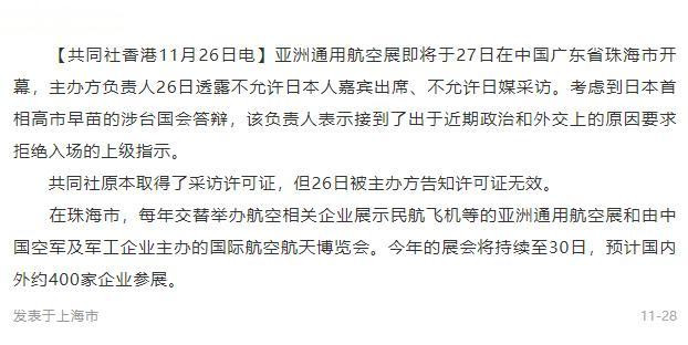 2025亚洲航空展于11月27日在珠海国际航展中心开幕,就在开幕的前一天,日本突然被取消了入场资格。